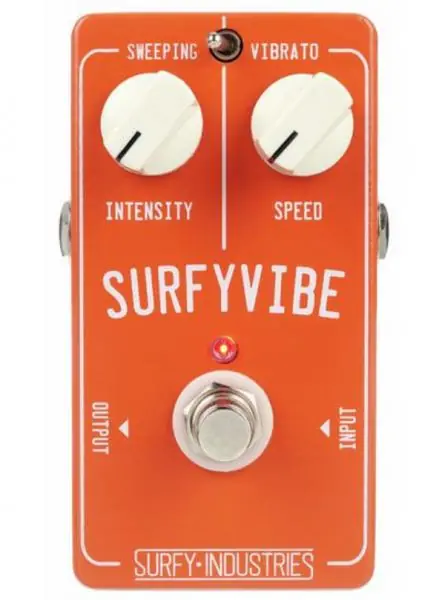 The vintage Magnatone amps were known for having that amazing wobbly sound, from discreet low intensity effects that makes an instrument mix well into the sound of a band, to extreme effects that can take the sound of guitar out of this world ! Depending on settings, it can be deeply bluesy, very modern or spooky sounding.The SURFY INDUSTRIES SurfyVibe compact effect pedal is emulating the mono channel of a Magnatone 280. The “sweeping” mode adds a feedback path to create a unique effect that is a mix of phaser / chorus / tremolo.The original circuit in the Magnatone 280 used a component called “varistor”, a type that has been obsolete for years. This is the reason modern circuits use other techniques to achieve pitch shift.To get the sound as close to the original as possible, we have found a way to emulate the original circuit. Surfy Industries replaced the tubes with jFET transistors and the varistors with special diode arrays.