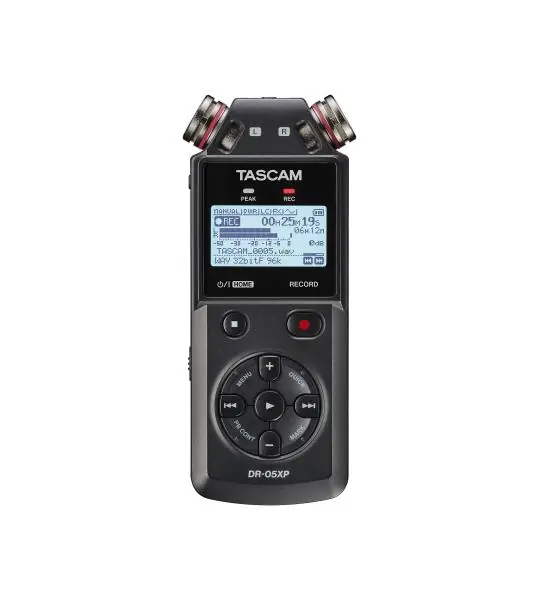De Tascam DR-05XP is een veelzijdige draagbare recorder die is ontworpen om geluid van hoge kwaliteit op te nemen en toch eenvoudig in gebruik te blijven.