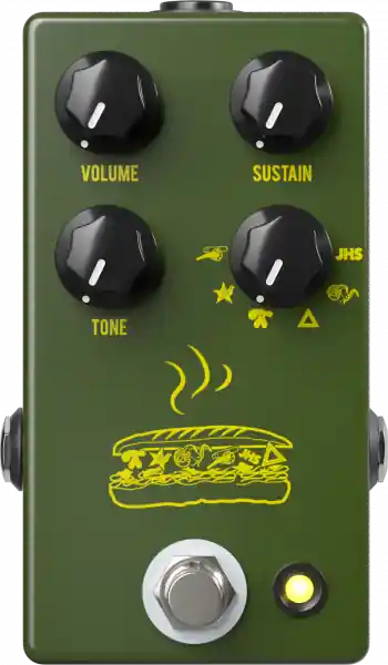 The Muffuletta replicates five classic Big Muff circuits as well as an original JHS version for a total of six Muff models, all analog, and each can be selected via the Mode control. JHS 2015 is more powerful, less compressed with a more haunting mid range, also the best for bass guitar. 73 Rams Head 1973-1977 V2 has a scooped mid range, less gain and is overall darker. The Triangle 1969-1970 V1 has more low-end response and is more articulate. The Pi 1977-1978 V3 (not the 2000 redesigned NYC version) is more aggressive sound. The Russian 1999-2009 V8 has less clarity and less low end. The Civil War 1991-1993 V7 has more mid range, brighter overall tone and less gain. Never before has there been a single pedal that gives you all these different eras of its tone.