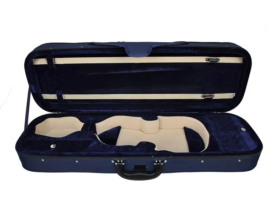 light weight oblong case.plush interior united colours with cover.two bow holders.wide accessories box.music pocket.two back straps.Weight 1,9 kgs.