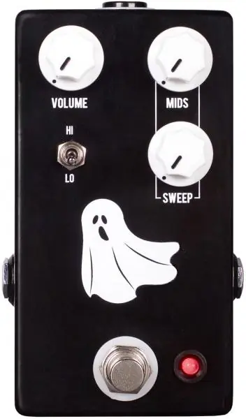 The JHS Haunting Mids effect pedal is not an overdrive but a really effective sweepable-mids EQ preamp that can turn any amp or pedal into a ghastly monster.With it’s ability to sweep mids and then boost or scoop them, you can find the tone that haunts your imagination. This pedal is fantastic on an almost-breaking-up amp to send it into midrange tube driven heaven, or with an overly scooped distortion to give you the bite you need to cut through with every “djent,” blues lick, rock riff, or lead line. It’s also excellent for taming an overly mid-heavy amp or pedal rig.