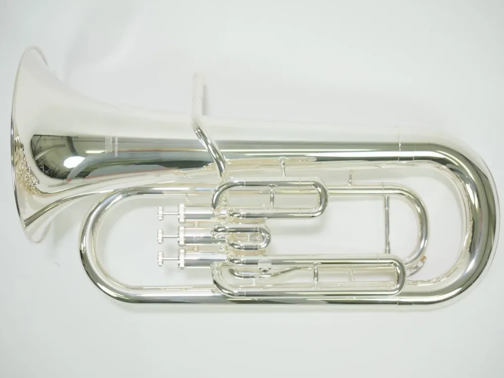 Yamaha euphonium model YEP-201S verzilverd in kofferStandard Series, Stemming: Bb,Materiaal: Yellow brass,Ventielen: 3 top action,Beker: 280 mm (11″), Boring: 14.5 mm (0.571″),Finish: Verzilverd