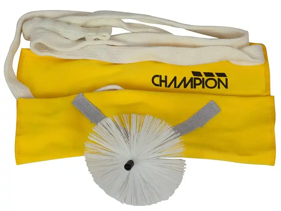 Yellow microfibre cloth 195 x 205mm, pull-through string with weighted end 1070mm length, white synthetic brush, diameter 70mm