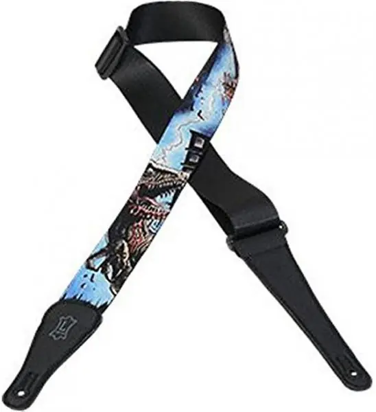 LEVY’s LEATHERS MPNZ2-006 Zombie Polyester Guitar Strap, 2″ width, adjustable to 65″, sublimation printed design, leather ends and tri-glide adjustment.
