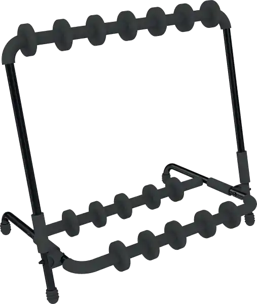 The 6 guitar stand with adjustable dividers is offered by the Quiklok brand.Rack stands fit both acoustic guitars and electric guitars. Each instrument support is covered with a layer of soft rubber, thus avoiding damage to the varnish of the guitar but also increasing its support. The neck holder allows you to position the guitar on both sides. These stands shine with their effectiveness when used on stage or in the studio.