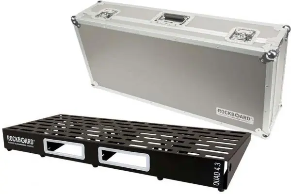 The ROCKBOARD QUAD 4.3 C With Flight Case is based on the innovations of our completely re-designed pedalboard series and incorporates a lot of added features, based on suggestions from musicians all around the world.The ingenious, lightweight, rigid and rugged construction, based on only one sheet of cold-rolled aluminum and U-shaped vertical support braces for additional stability, as well as the innovative slot-based design lets you hide cables easily for a neat and tidy design, all stay the same.Added and improved features include an extended slot grid for perfect fit of our new optional QuickMount plates, added mounting positions for the Optional RockBoard® The Tray – Universal Power Supply Mounting Solution (QUAD 4.2, CINQUE 5.2, 5.3 and 5.4), second MOD mounting slots for RockBoard® CINQUE 5.3 and 5.4, lighter ABS pedalboard cases and improve pedalboard bags.