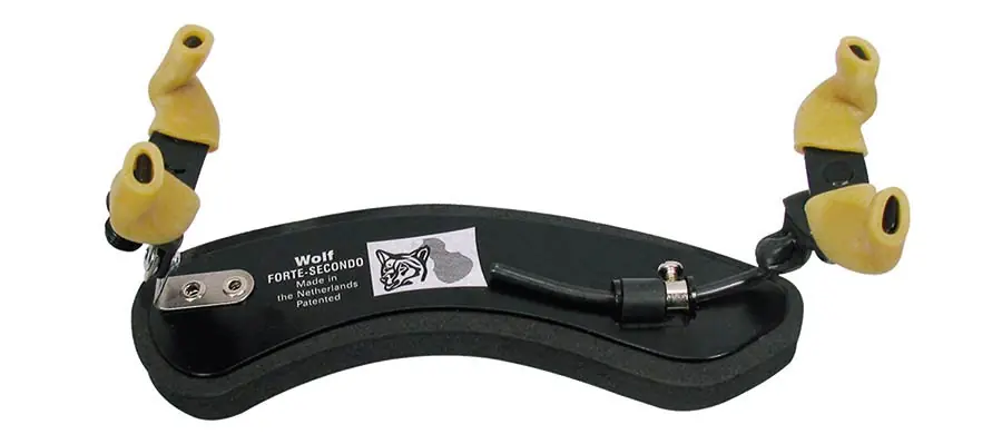 De schoudersteun bestaat voor het grootste gedeelte uit comfortabel rubber, daar bovenop zit een aluminium plaat die het mogelijk maakt deze aan te passen naar elke gewenste stand. Elke speler kan zo ergonomisch verantwoord spelen, in de positie die bij diegene past. Bij deze schoudersteun worden 2 plastic buisjes geleverd waarmee de arm stabiel staat wanneer er in de hoogste positie wordt gespeeld.