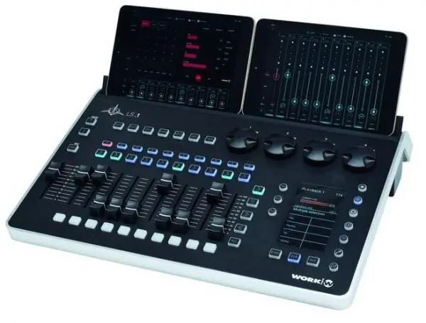 The Ls-1 is a connected light console.LightShark is a multiplatform lighting control system that can control up to 4 DMX universes (8 sACN universes).It incorporates a super-fast Web UI that can connect up to 3 devices at the same time to create your own multi-screen control system.The devices are connected as much thanks to the wi-fi access point of the LS1 and LScore consoles as by the onboard Ethernet connection.LightShark offers a plug & play solution, avoiding the inconvenience of having to install a software or a driver on a computer.A web browser is all you need to have full access to the control system, regardless of the operating system (iOS, Android, Linux, Windows, macOS). LightShark is a new concept in lighting control and is a perfect solution for applications such as nightclubs, DJ’s, medium-sized and corporate events, schools, etc.LightShark offers a clear and simple user interface. Any lighting designer can use 100% of LighShark’s features in less than 15 minutes. New users will adapt quickly and can create spectacular tables without any technical knowledge thanks to the integrated effects engine.The LS-1 console integrates the software engine and combines an intuitive and ergonomic control surface worthy of the most powerful lighting consoles. The LS-Core, meanwhile, omits the control surface, but offers exactly the same control software and the same processing power.