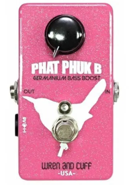 Featuring a hand sorted germanium transistor and JFET/germanium single hybrid circuit, WREN AND CUFF Phat Phuk Germanium Bass Booster compact effect pedal is made specifically for the bass guitar. It was designed to accommodate tunings down to a five string’s typical low B and can be used for even lower tunings.This booster was not made to be transparent. It’s not a JFET or MOSFET based booster. There are many fine boosters out there that are designed to be transparent. If that’s what you’re after, the Phat Phuk may not be for you.A unique sounding pedal which adds a beautiful sheen to your bass’ top end and a bit of grit to the overall tone. It’s a fantastic pedal for situations where you want a lift in your overall level, during a chorus or bridge for example, with a bit of bawdy bump via the germanium transistor.