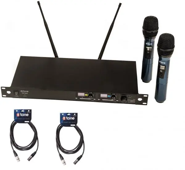 The Xhf 202 is a wireless microphone system with 2 hand microphones from X-tone.The XHF 202 L is a 2-channel wireless system for singers and presenters, which offers great audio performance for any use, Karaoke, stage, rehearsals, and speech.It allows a range of 60 meters to be reached under ideal conditions, with infrared synchronization.Its transmitter has an output power of 10MW.Integrated system and noise reduction.An OLED HD display on the front panel indicating reception rate (RF) and signal level (AF)The frequency response of both microphones ranges from 50hz-16khz.Both microphones are dynamic, and cardioid.