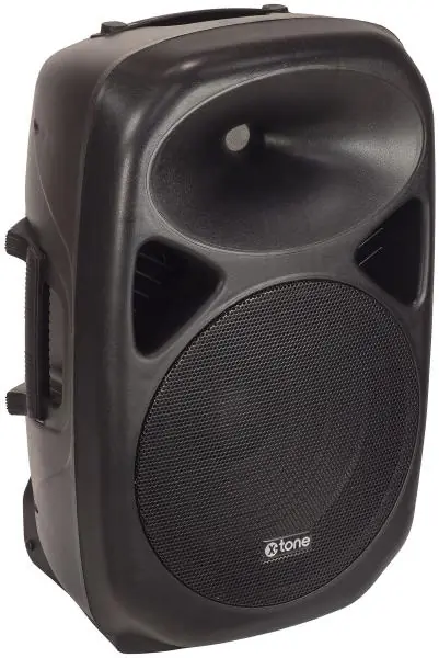 he Sma-12 from X-tone is an amplified speaker 250Watts.The Sma-12 is equipped with a Class D bi-amplification with a power of 250 Watts.Perfect for transport thanks to its wheels, for all uses, Djs, Musicians, Bars, restaurants.At the back of the speaker:- 1 microphone input (jack or Xlr)- 1 line input (Xlr or Rca)- 1 output mix out (to connect speakers in series)- 1 EQ Bass and Aigue- 1 master volume.