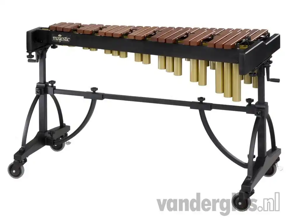 Majestic xylofoon model X6535D Anniversary met padouk klankplatenOf je nu de duurzaamheid vereist van synthetische staven, de delicate warmte van padauk, of de rijke klank van palissander, Majestic xylofoons beschikken over een uitgebreid bereik met kwint-stemming voor een voortreffelijk gebalanceerde toon.Bars: PadaukOctaves: 3.5Range: F4 – C8Notes: 44Graduations: 1Bar widths: 38 mmLeg assembly: ConcertHeight: 90 cm – 115 cm