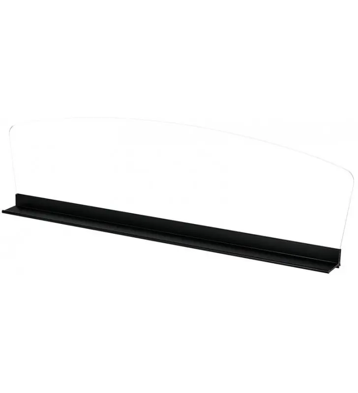 - Helder perspex met zwart metalen frame.