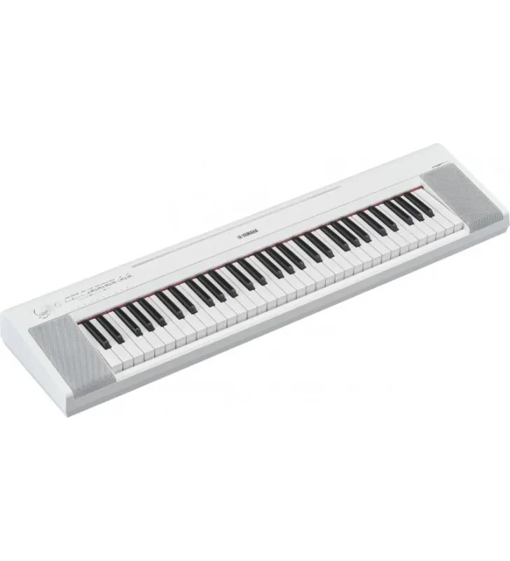 Het keyboard met 61 toetsen (een conventionele piano heeft 88 toetsen) is perfect voor het spelen van popmuziek of eenvoudige klassieke stukken. Hoewel de toetsen dezelfde rechthoekvorm hebben als die op een piano, voelt het toetsenbord lichter aan, waardoor beginnende pianisten gemakkelijk kunnen beginnen, in plaats van het zwaardere gevoel van een standaard pianotoetsenbord. U kunt bij de NP-15 ook een hoofdtelefoon gebruiken als u bang bent dat u de mensen om u heen stoort tijdens het spelen.