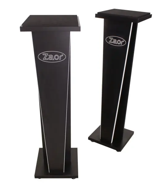 ZAOR MIZA V-Stands was designed with two main criteria in mind: They should be affordable and yet designed to the best standards of technical performance and design. We chose the same materials as for the other items in the MIZA range, but with two particulars, that make it a very professional and highly useable speaker stand: We added a pad of AERSTOP on top of the stand, that helps isolate the speaker from the stand, reducing the propagation of lower frequency content through the speaker to the floor and thus the room. They are available in two fixed heights!