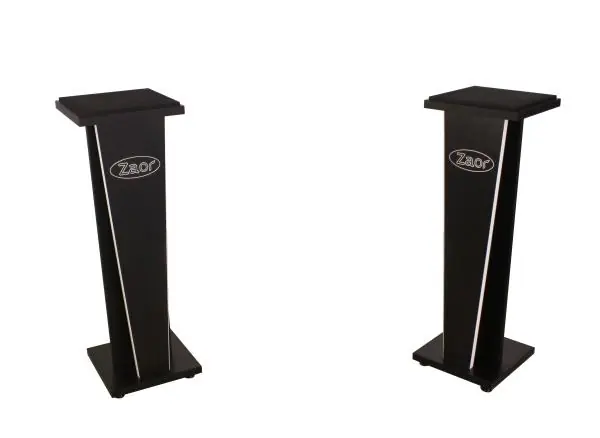 ZAOR MIZA V-Stands was designed with two main criteria in mind: They should be affordable and yet designed to the best standards of technical performance and design. We chose the same materials as for the other items in the MIZA range, but with two particulars, that make it a very professional and highly useable speaker stand: We added a pad of AERSTOP on top of the stand, that helps isolate the speaker from the stand, reducing the propagation of lower frequency content through the speaker to the floor and thus the room. They are available in two fixed heights!